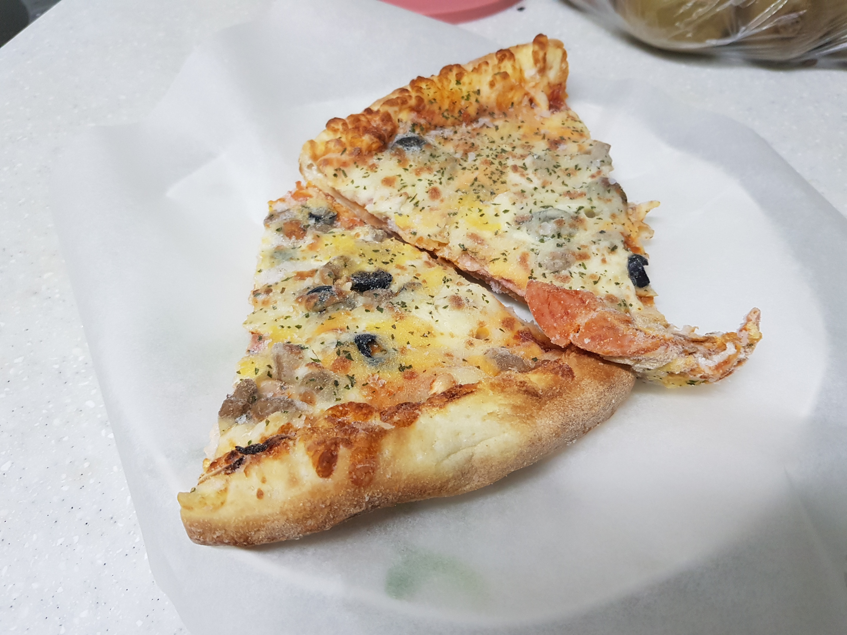 이상 냉동피자를 맛있게 데우는 법이었다. 이왕 냉동 피자를 먹을거면 레인지로 슥 돌려서 먹는 것보다 이렇게 조금 시간을 두고 돌리는 것이 훨씬 더 맛있다. 갓 구워낸 피자를 따라갈 수는 없지만 말이다.